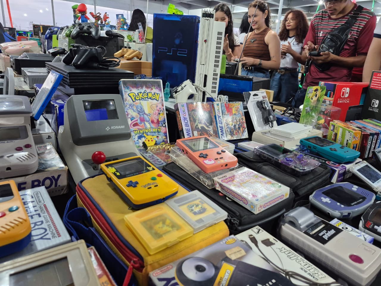 Uma exposição de controles de videogame, conhecidos como joysticks, chamou atenção ao reunir modelos antigos e atuais — do Game Boy ao PlayStation 5. Os visitantes puderam relembrar clássicos como “Super Mario” e conhecer jogos mais recentes, como “Free Fire”.