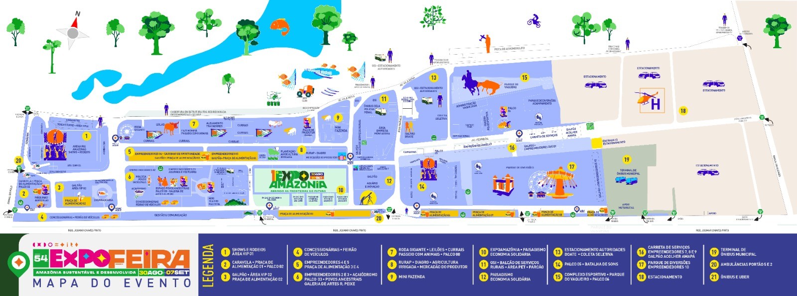 A 54ª Expofeira do Amapá começa neste sábado (30) e segue até 7 de setembro, no Parque de Exposições da Fazendinha, em Macapá. Realizado pelo Governo do Estado, o evento reúne negócios, sustentabilidade, cultura e lazer para todos os públicos (Veja o mapa do espaço do evento no fim desta matéria).