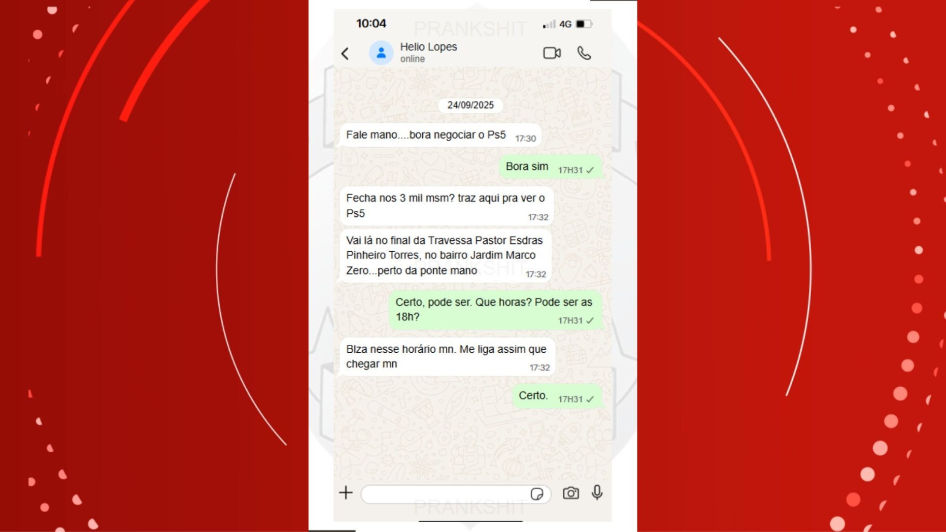 A vítima acreditava estar concluindo uma negociação legítima, mas foi surpreendida pelo suspeito armado. No assalto, o suspeito levou um celular, o videogame anunciado, documentos pessoais e cartões bancários.