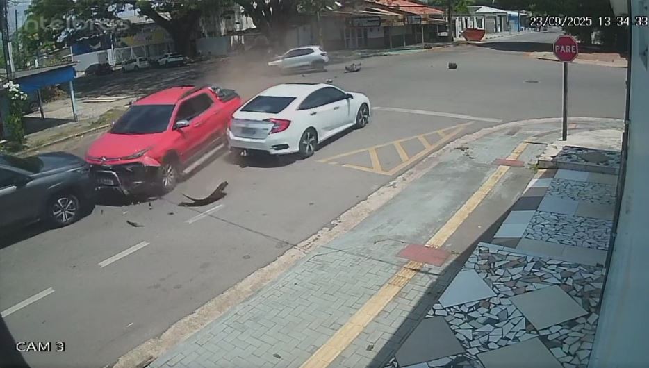 De acordo com testemunhas, o veículo da cor vermelha trafegava pela Rua Marcelo Cândia no sentido sul-norte e avançou a via preferencial, atingindo os demais veículos.