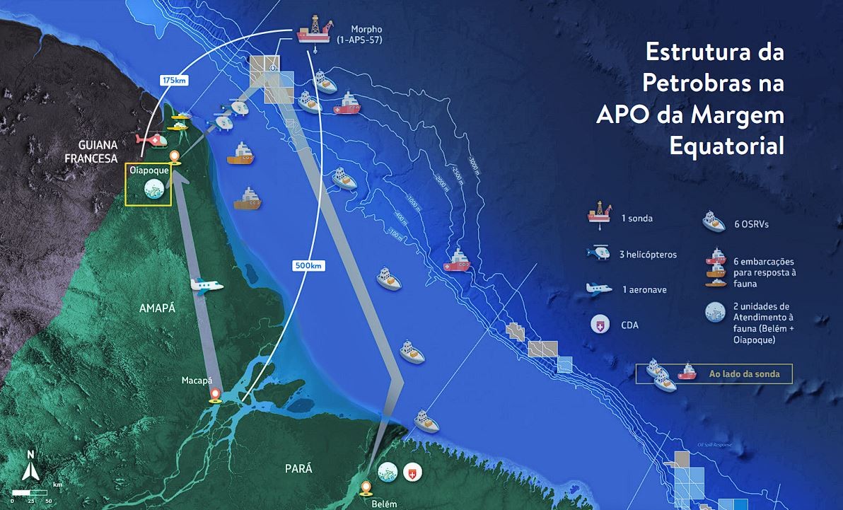 A Petrobras informou que vai usar no Amapá a maior estrutura de resposta a ocorrências já mobilizada pela companhia. A Avaliação Pré-Operacional (APO) na Bacia da Foz do Amazonas tem previsão de início no domingo (24).